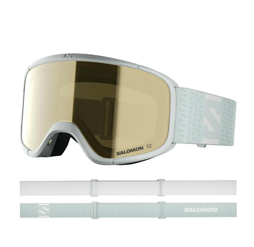 Salomon Aksium 2.0 Access Goggels/Skibrille.Egnet til kvinder og smalle ansigter - Flash overfladebehandling - grå filtreringsfarve - "Guld" linse, med let spejlfinish.Cylindriske - Wide vision - hjelm kompatibel - 100% UV-beskyttelse. Airflow system. VLT: 25% - vejrforhold let skyet - kategori: 2Vægt 110 gram.