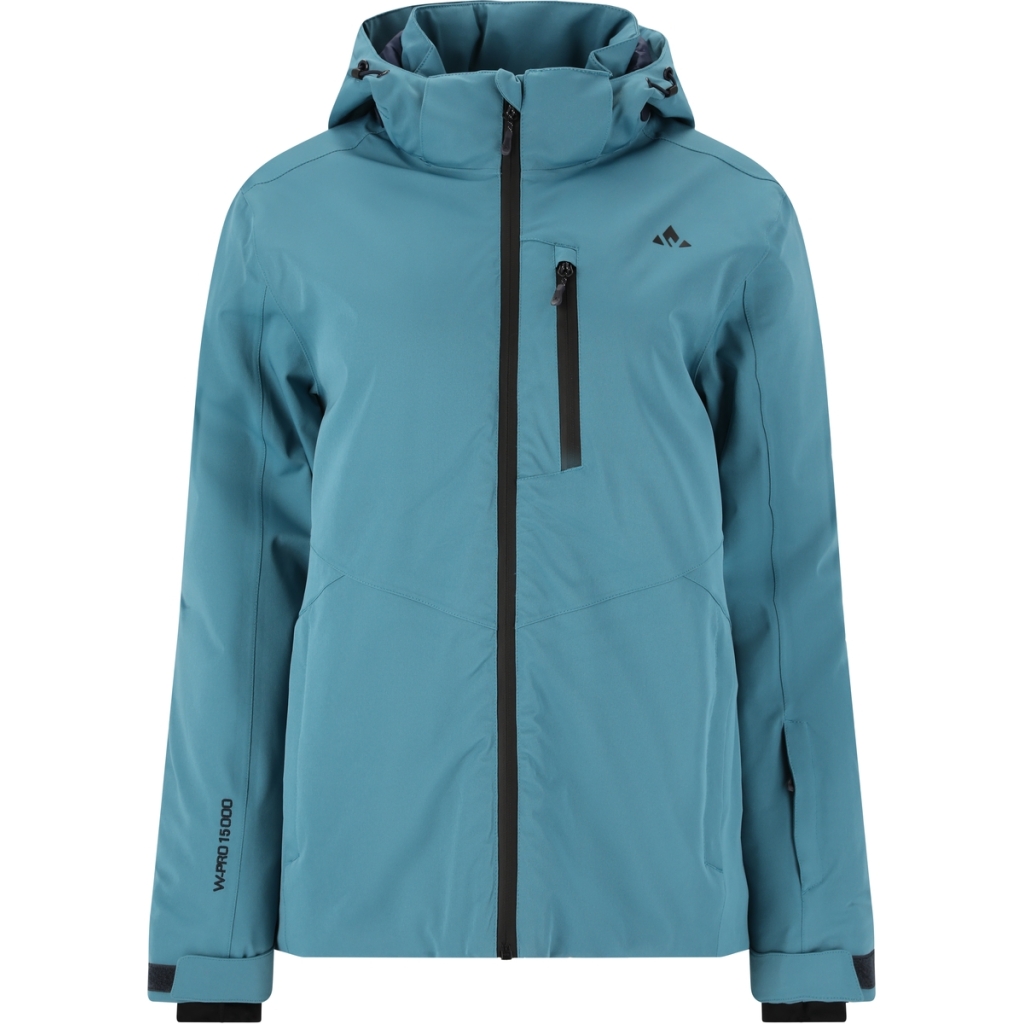 Lækker stretch dame skijakke Vind- og vandtæt stretch jakke, med W-PRO 15000 mm. i vandsøjletryk. Aftagelig hætte. gennemgående vandtæt YKK lynlås, snefang og snørre i bunden og velcro ved ærmer. Mange gode lommer med lynlås samt lycra manchetter med hul til tommelfinger.