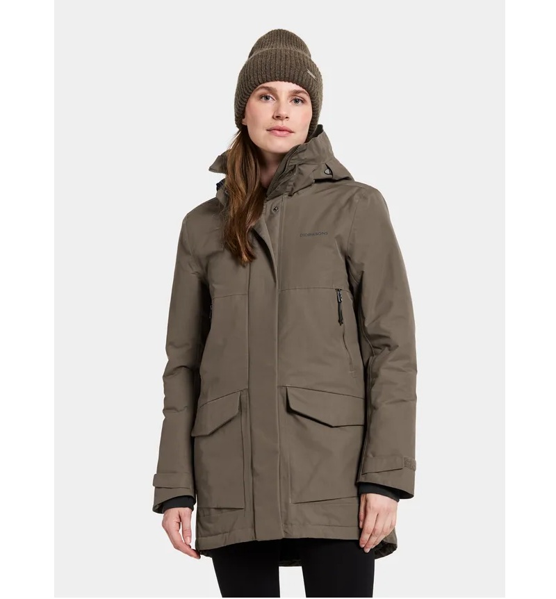 Lækker klassisk parka til kvinder, regular fit og figursyet.3/4 længde, fast hætte, skjult gennemgående 2vejs lynlås, manchetter med thumbhole samt regulering ved ærmer. Flere lommer og andre gode detaljer.Åndbar, vind og vandtæt med tapede sømme,Vandsøjletryk: 10.000 mm.Åndbarhed: 5000 G/m2/24h Polstring: 140 g/m²Dejlig varm - og ideel til al slags vejr.