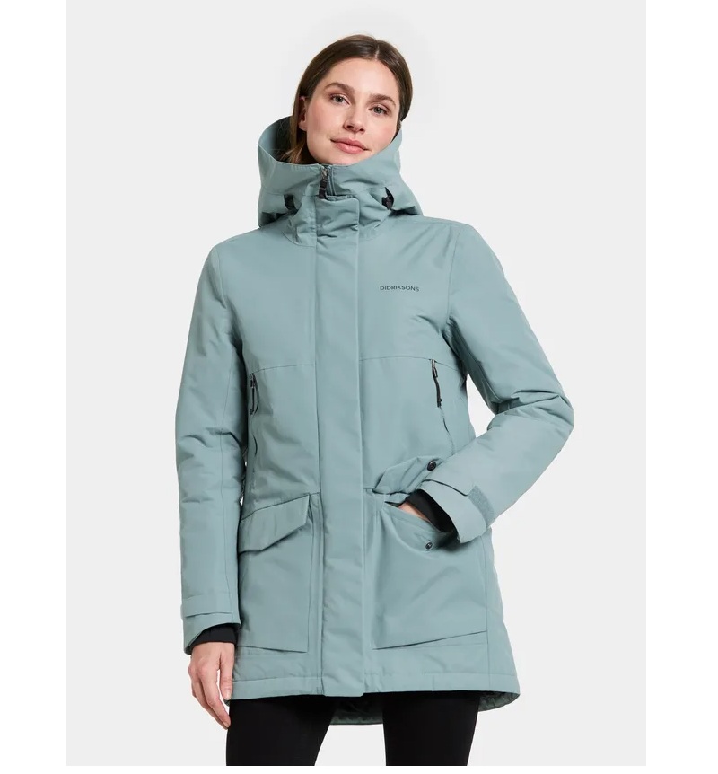 Lækker klassisk parka til kvinder, regular fit og figursyet.3/4 længde, fast hætte, skjult gennemgående 2vejs lynlås, manchetter med thumbhole samt regulering ved ærmer. Flere lommer og andre gode detaljer.Åndbar, vind og vandtæt med tapede sømme,Vandsøjletryk: 10.000 mm.Åndbarhed: 5000 G/m2/24h Polstring: 140 g/m²Dejlig varm - og ideel til al slags vejr.